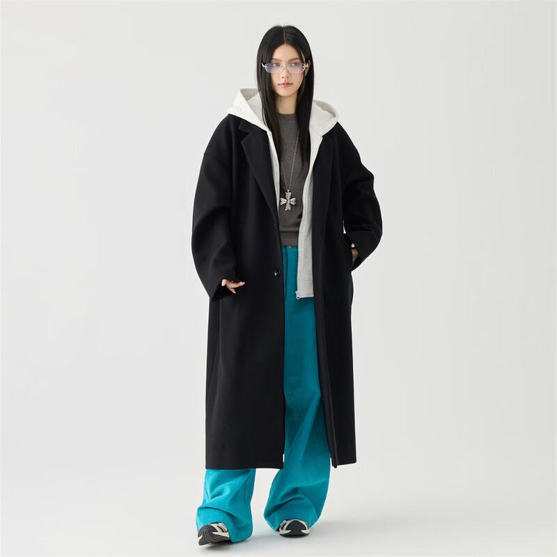 GOLFCROSS Unisex Faux Two-Piece Hooded Long Windbreaker Coat