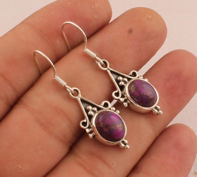 Solid 925 Sterling Silver Purple Copper Turquoise gemstone Earrings handmade Jewelry Boho Earrings