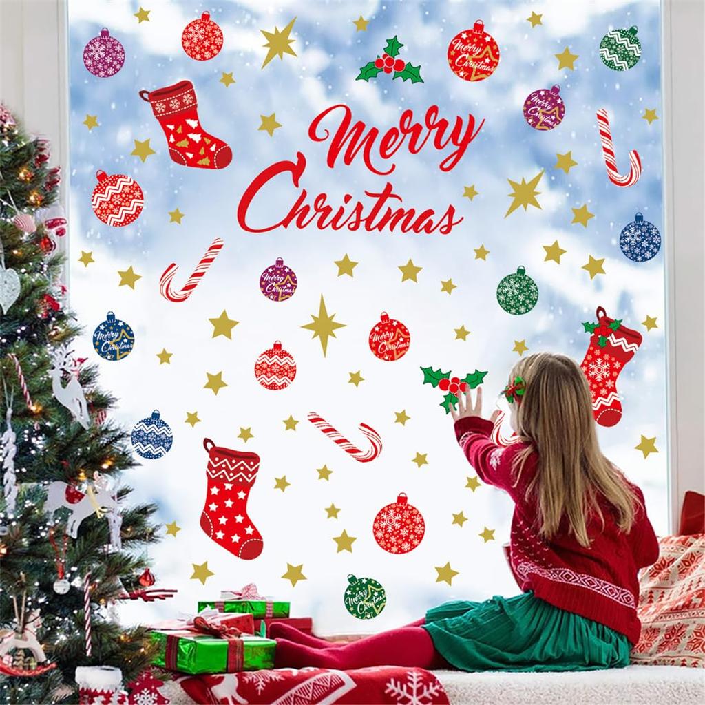 Christmas wall stickers featuring Christmas candy and removable wallpaper for interior Merry Christmas decor for living and balls, canes, socks,