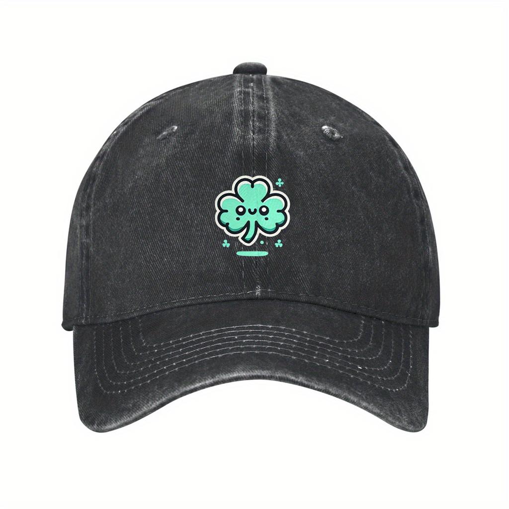 Cute Owo Clover St Patrick Day Baseball Cap Black Denim Adjustable Dad Hat Unisex Casual