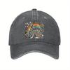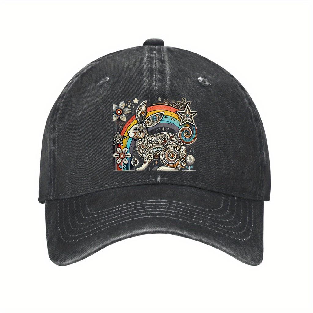 Bohemian Rainbow Bunny Baseball Cap Distressed Cotton Vintage Style Casual Adjustable Hat for Adults