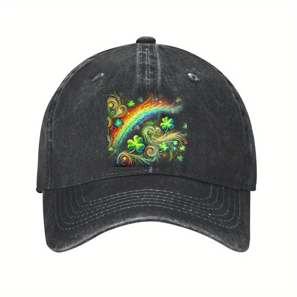 St Patricks Day Rainbow Clover Print Cotton Baseball Cap Adjustable Curved Brim Casual Dad Hat Unisex