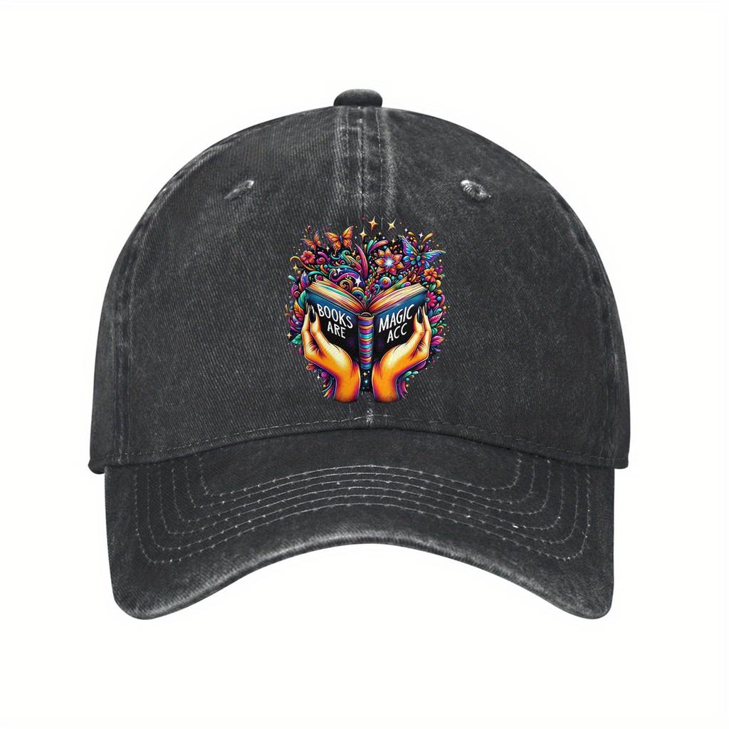 Books Are Magic Graphic Baseball Cap Unisex Washed Cotton Adjustable Dad Hat Casual