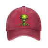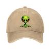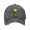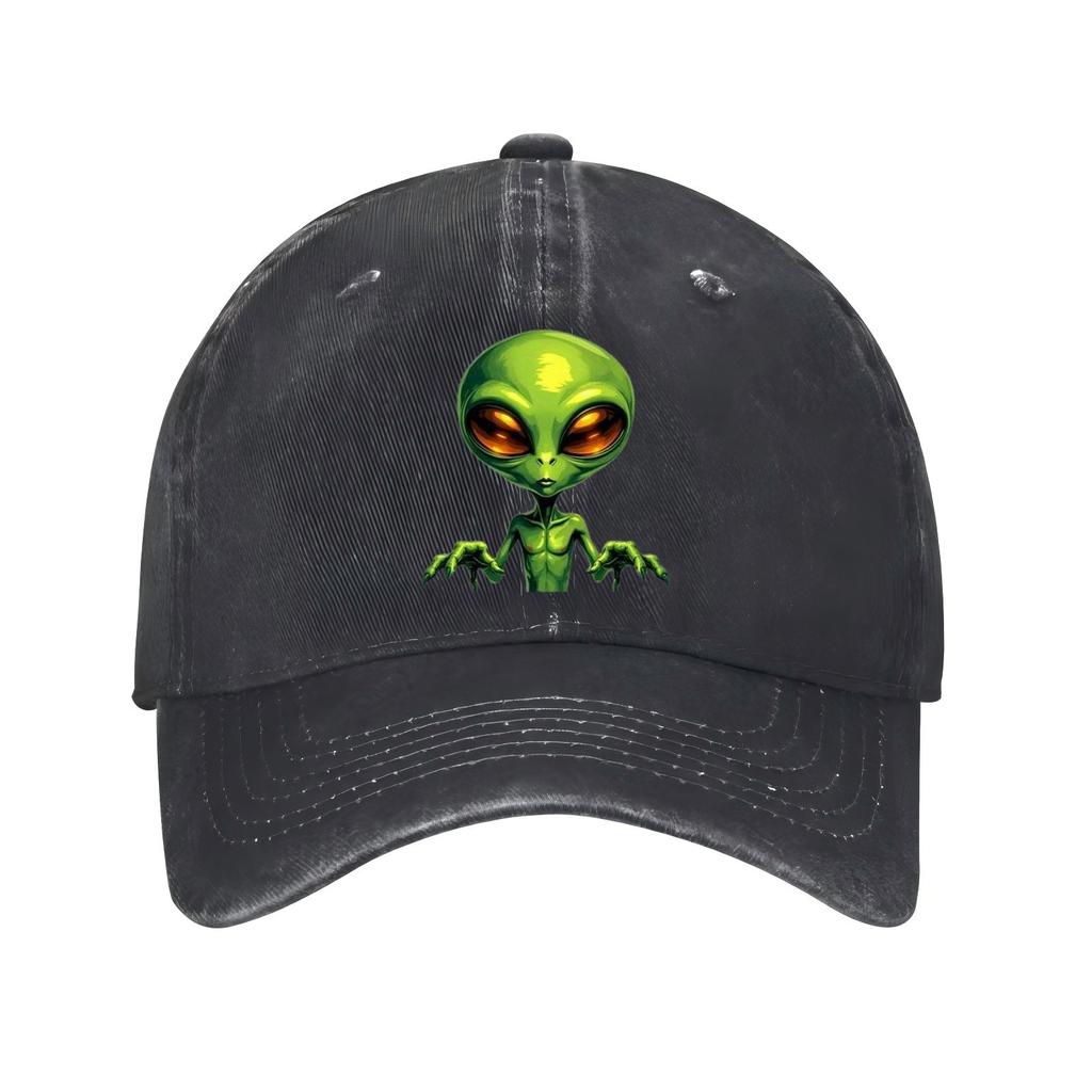 Green Alien Head Print Baseball Cap Unisex Cotton Adjustable Casual Outer Space Theme Hat