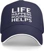 Life Happens Bourbon Helps Print Polyester Trucker Hat Casual Adjustable Baseball Cap Unisex