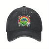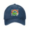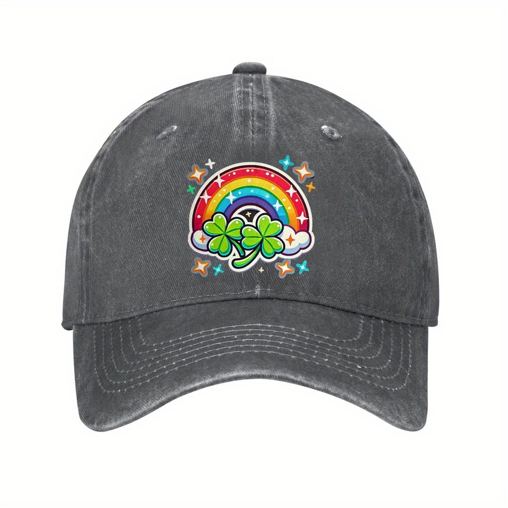 St Patricks Day Rainbow Clover Baseball Cap Distressed Denim Graphic Print Casual Adjustable Hat