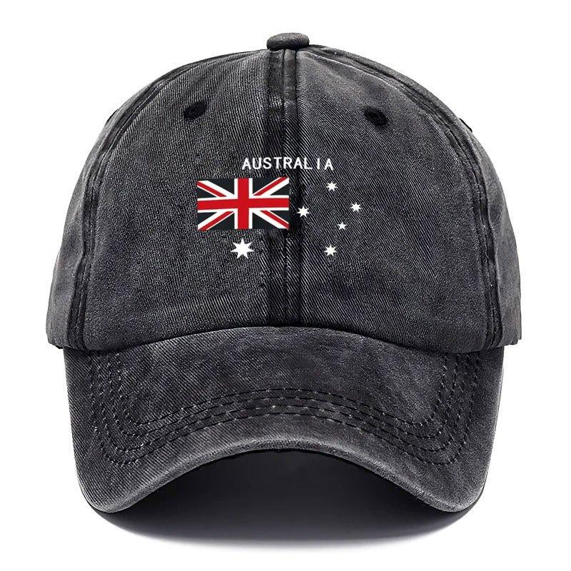 Adjustable Washable Vintage Baseball Cap Featuring The Word AUSTRALIA And Elements of The Australian Flag
