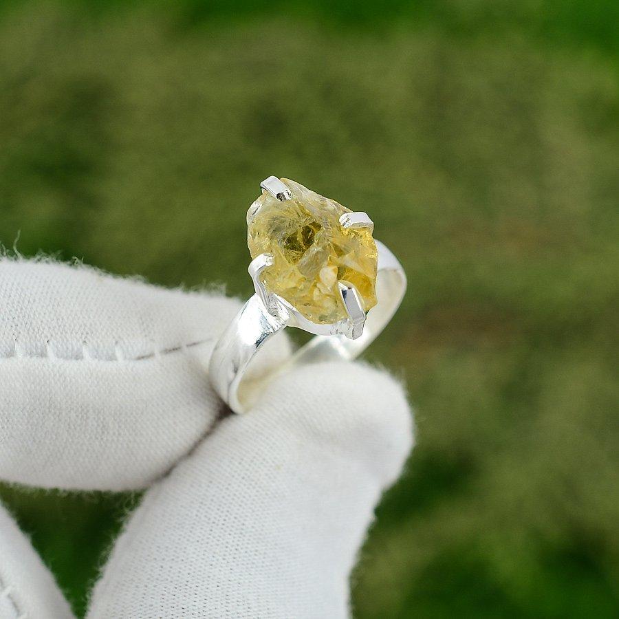 Birthday Gift For Her Natural Citrine Rough Solitaire Ring Size 7.5 925 Silver