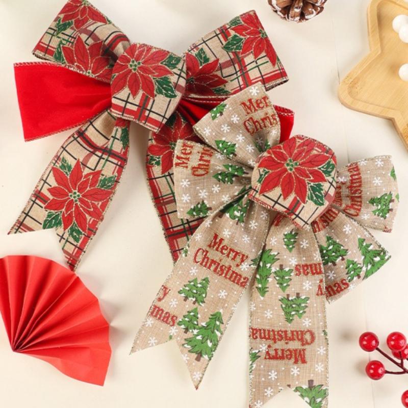 2pcs Decoration Bow Christmas Tree Pattern Print Party Decorative