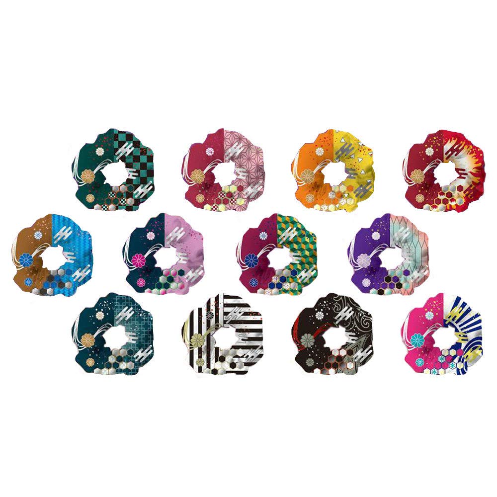 Set of 12 hair individually packaged for hygiene Japanese-style scrunchies, ties, demon-fighting design,
