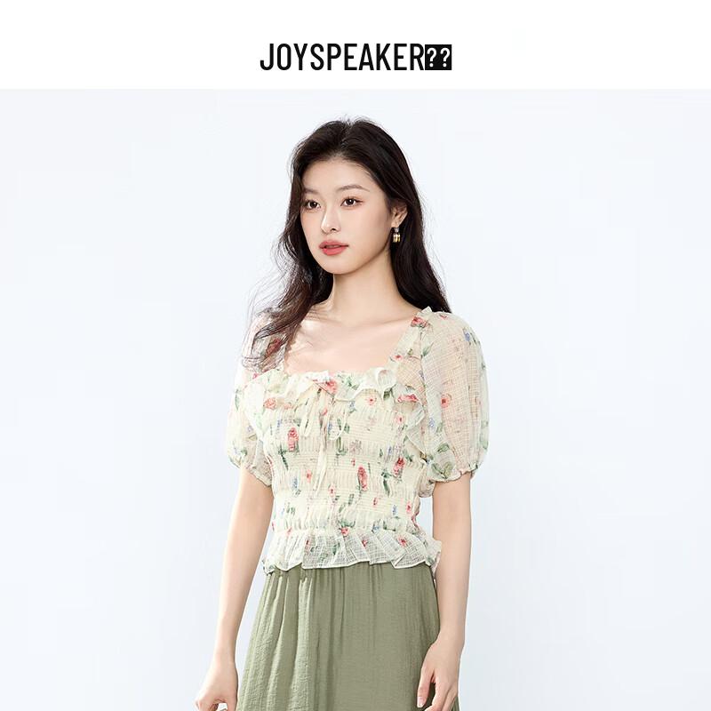JOY SPEAKER Women's Printed Square Neck Short Sleeve Shirt
