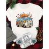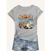 Printed Van T-Shirt, Round Neck Short Sleeve Sporty Tee, Comfortable Top for Women