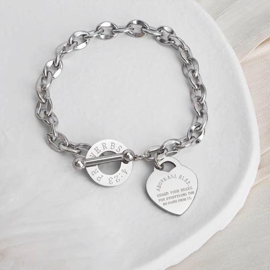 Yousheng Women Bracelet Stainless Chain Heart Pendant Titanium Steel Individual Letter Inscribed Solid Color Smooth Exquisite Wrist Jewelry