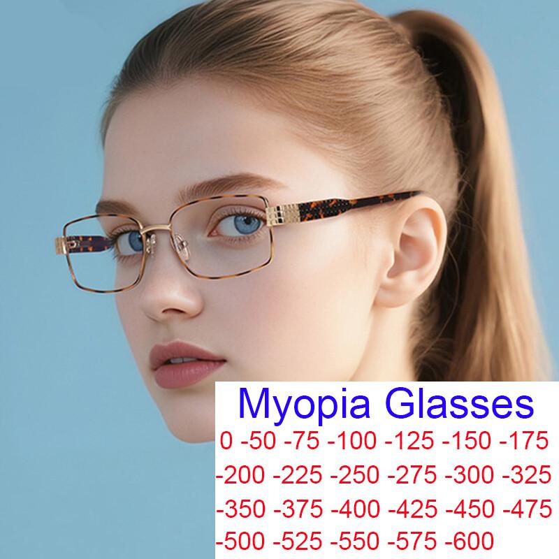 Ochelari Pătrați Mici cu Ramă Metalică pentru Femei Miopi Ochelari de Vedere Scăzută Modă Dioptrii Negative -1.5 -2 Rețetă