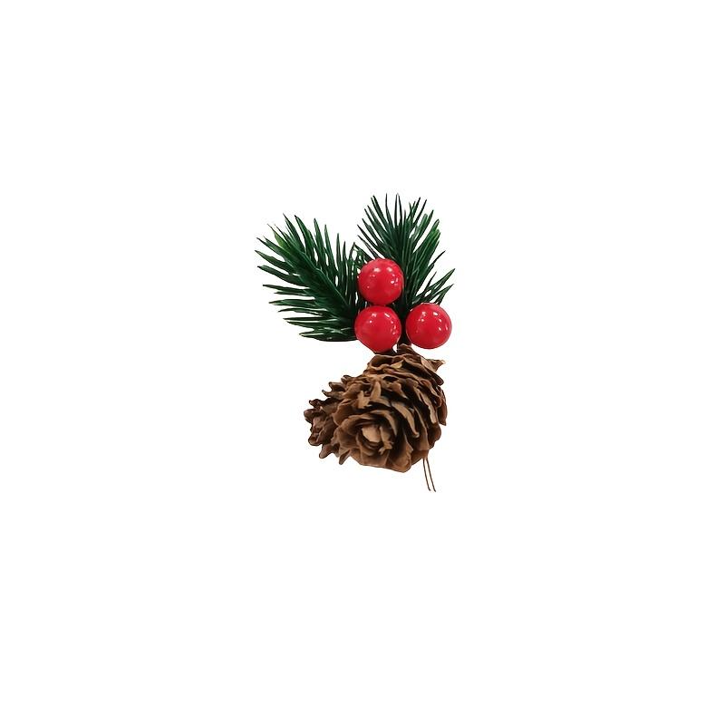 10pcs Festive Artificial Pine Picks with Red Berries Pinecones Americana Style Faux Pine Needle Sprigs for DIY Christmas Wreaths.
