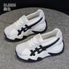 Thick-soled shallow-mouth dad shoes spring and autumn new leather small sports and leisure shoes