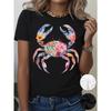 European Size Women's Crab Print T-Shirt - Summer Casual Short Sleeve Round Neck Top Suitable for Casual Attire & Gifts, Crab Blouse
