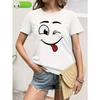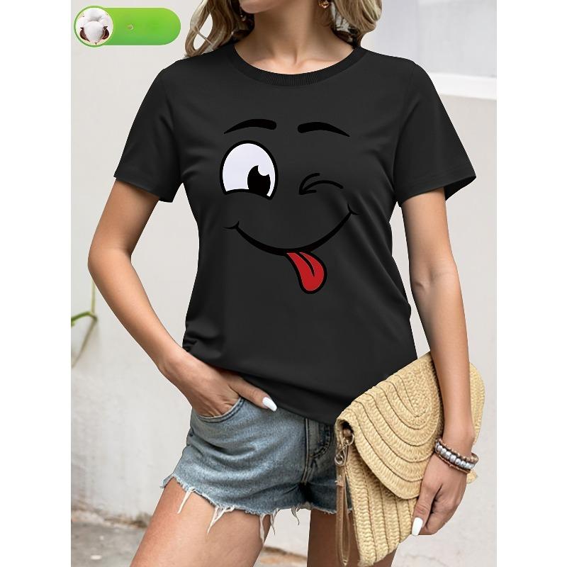 Women's Happy Face Graphic Tee Crew Neck Short Sleeve Playful Spring Summer Everyday Casual Fashion Top
