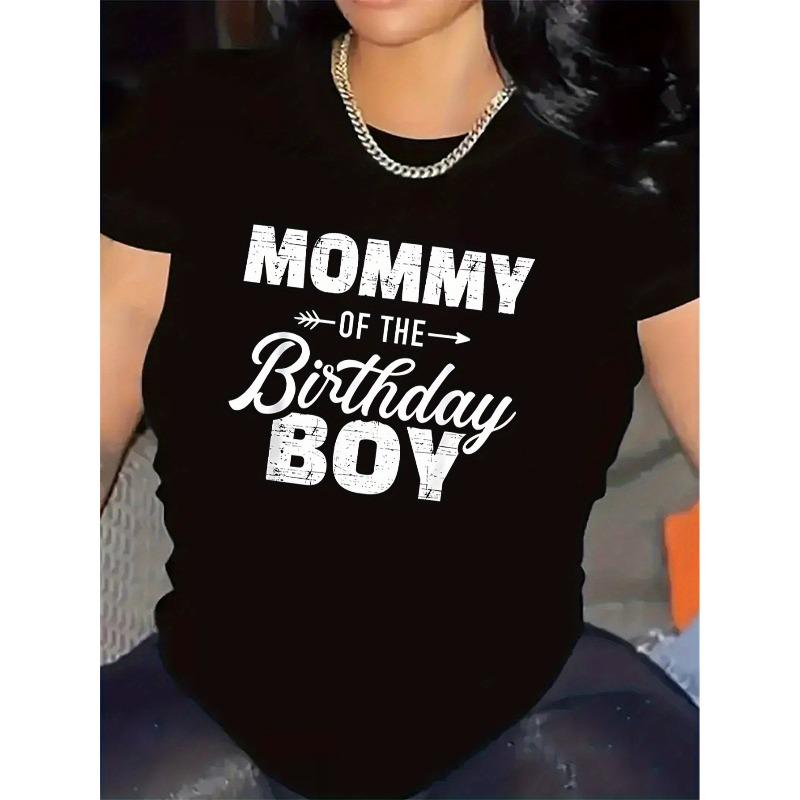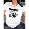 Birthday Mom Black & White T-Shirt Fun Print Crew Neck Short Sleeve Slight Stretch Durable Comfort Party Family Wear