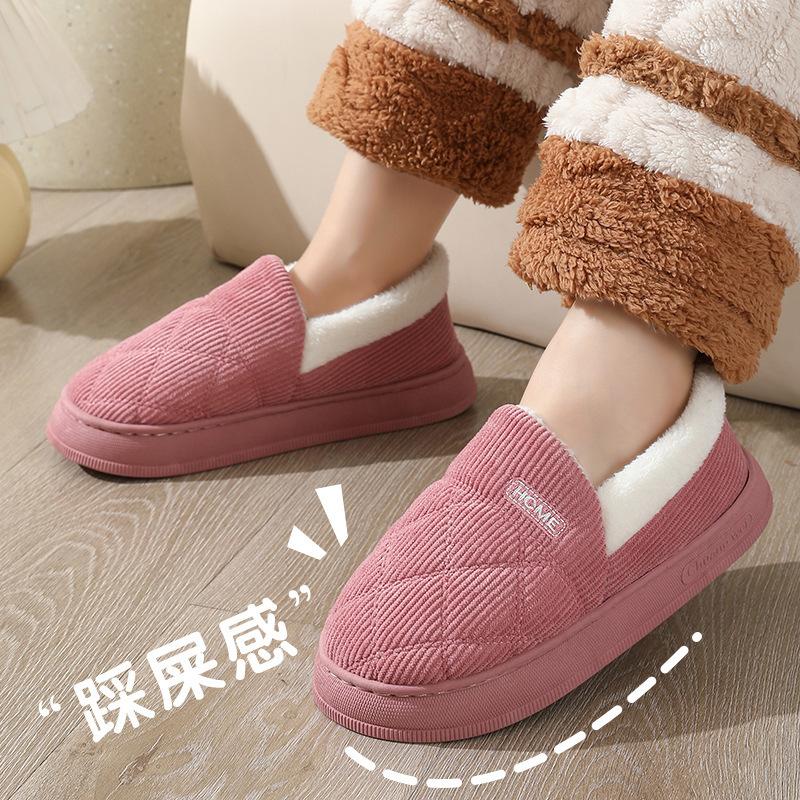 New autumn and winter thick-soled warm cotton slippers home indoor non-slip plush couple confinement cotton shoes outside