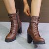 Autumn and winter new high-heeled short boots large size belt buckle European and American side zipper thick-heeled boots Martin boots