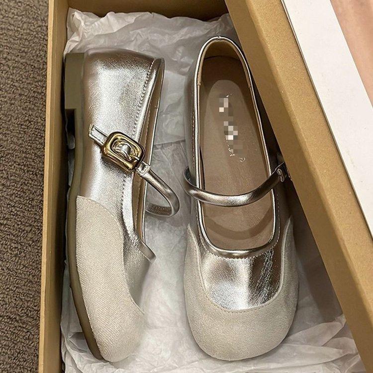 French gentle Mary Jane shallow mouth single shoes spring new high-end temperament flat bottom with skirt