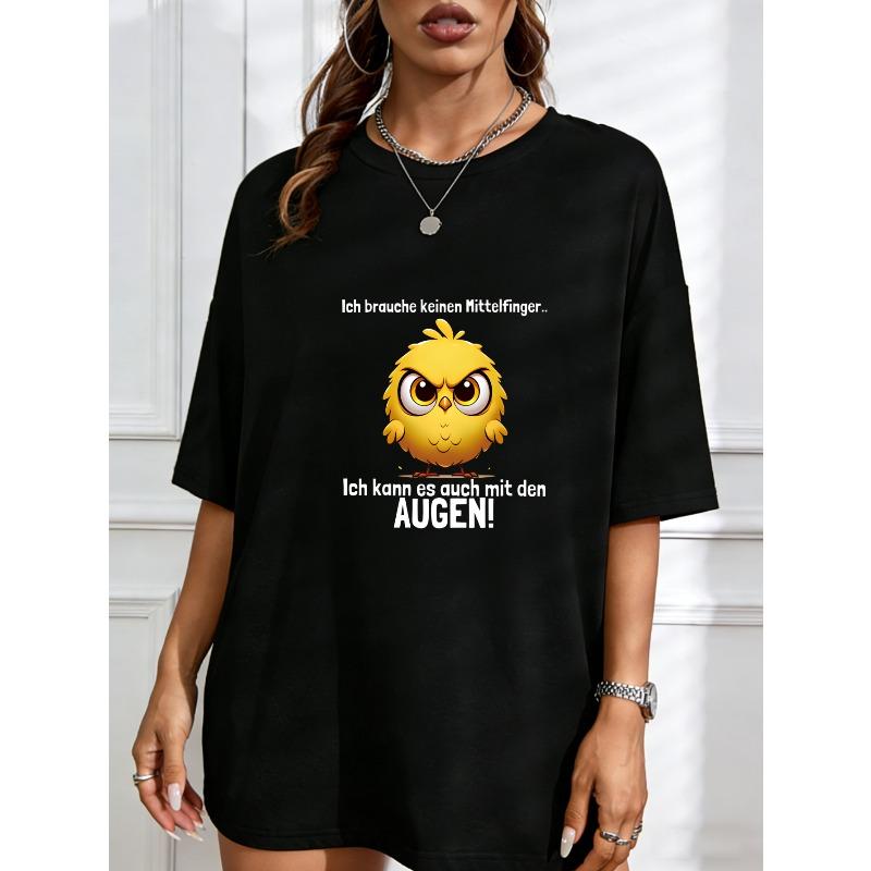 Cute Chick Graphic T-Shirt White Angry Bird Cartoon With Text Augen Casual Wear For Women Summer Outfit Streetwear Fashion Top
