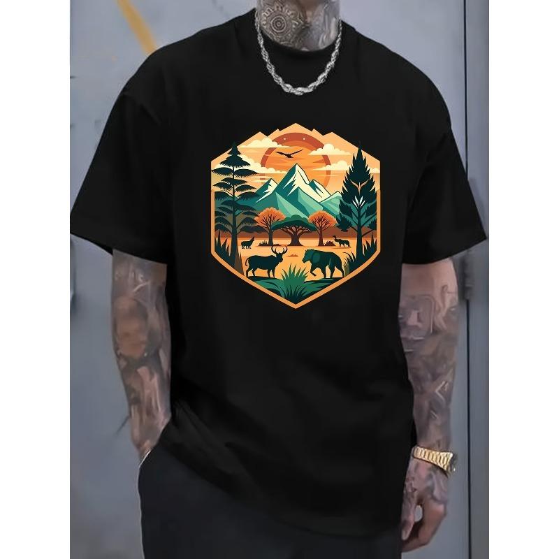 European sizes Summer Trend Men'S Pure T-Shirt, Casual Front Pattern Printing, Outdoor Wear Men'S Fashion Pure T-Shirt