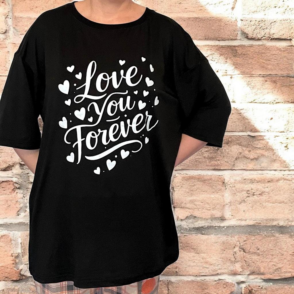 Mărimi europene Imprimeul „Te iubesc pentru totdeauna”, un tricou versatil pentru purtare casual în toate cele patru anotimpuri