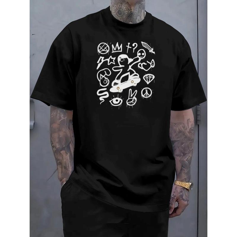 European sizes Men'S Plus Size Street Art Graffiti Short-Sleeve T-Shirt | Trendy Cartoon Print Design, Breathable Summer, Machine-Washable