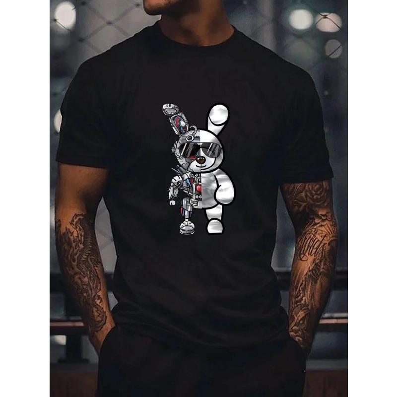 European sizes Machine Bear Pattern Printing, Men'S Casual T-Shirt, Short-Sleeved Shirt in Summer, Stylish And Versatile.