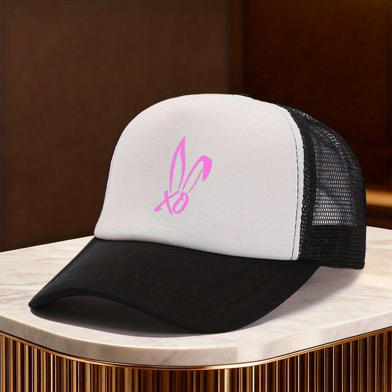 Easter Bunny Ears Xo Graphic Trucker Hat Black White Mesh Baseball Cap Unisex Casual Street Style Gift