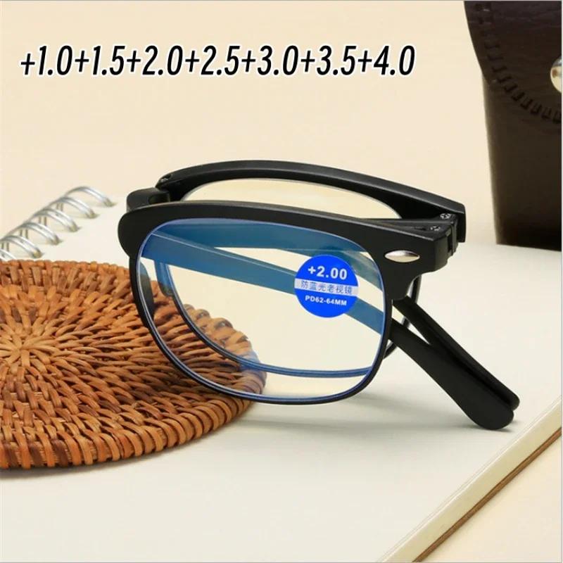 Portable Foldable Reading Glasses Anti Blue Light Vintage Eyewear for Men Women +1.0 to +4.0