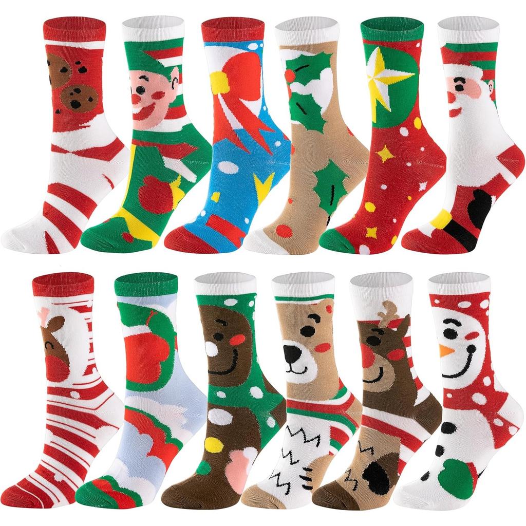 JOYFY 12 Pairs Christmas Socks Christmas Crew Socks for Women Holiday or Birthday Gift