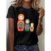 Women's Russian Matryoshka Folk Floral Print T-Shirt Casual Crew Neck Short Sleeve Top