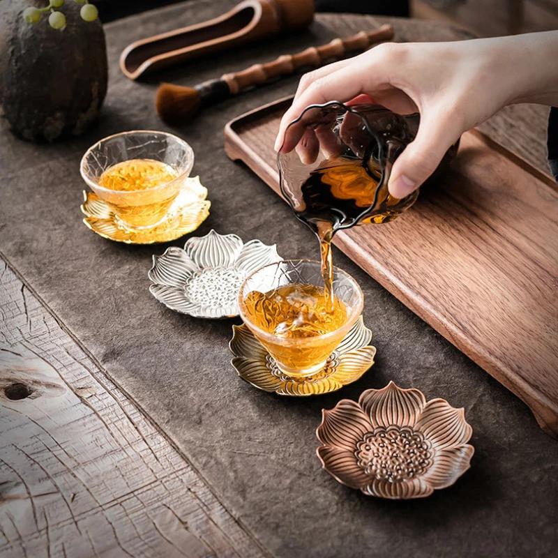 Japanese Style Tea Trays Retro Copper Anti Scalding Cup Holder Mat Pad Kung Fu Teaset Coffee Coaster Tea Ceremony Accessories