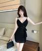 European and American sexy deep V-neck strap splicing lace rear cross low-cut bottoming dress showing thin hip skirt