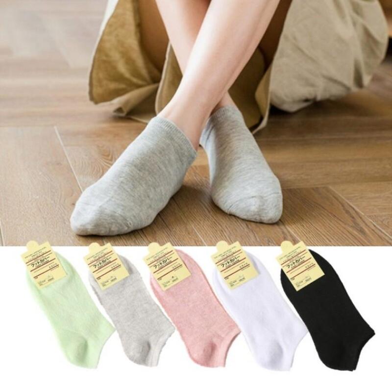 5-piece set of 100% cotton socks, plain ankle socks, and fashion socks