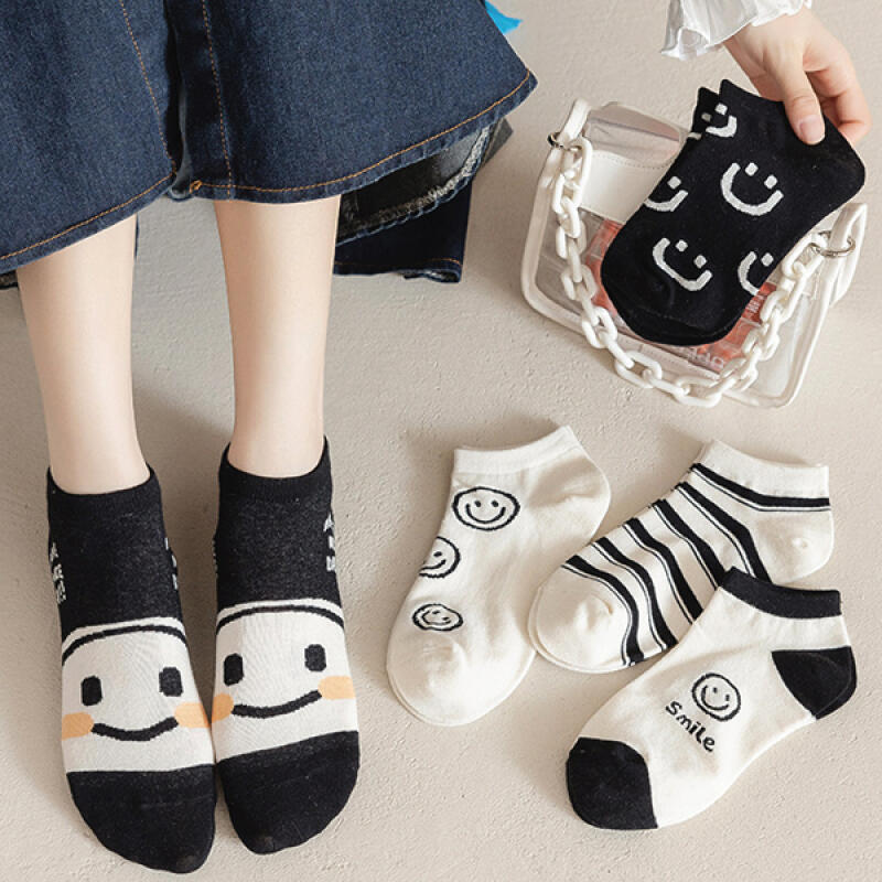 [5-Pair Set] Chip Smile Daily Women's Fashion Ankle Socks