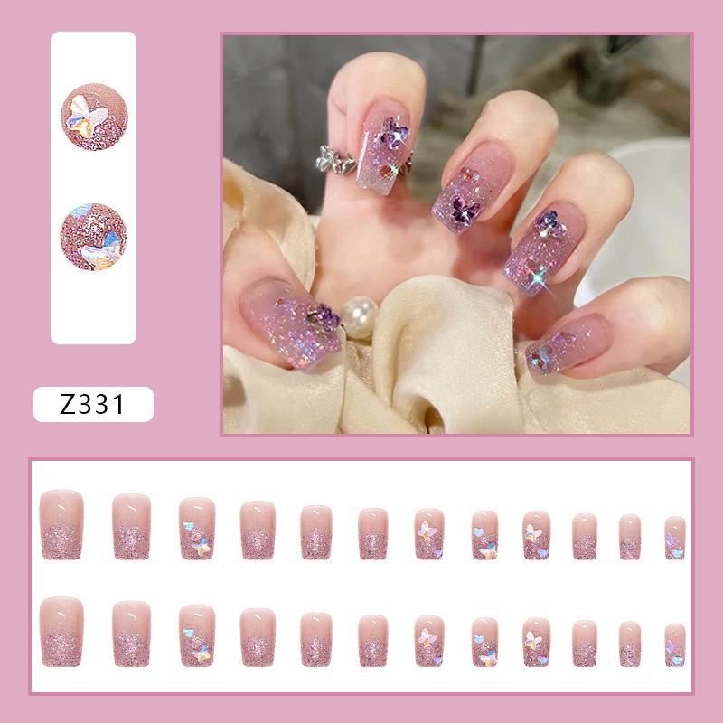 Wear nail diamond finished Aurora butterfly shiny fragments ice powder nail patch ultra-thin nail piece medium and long nail