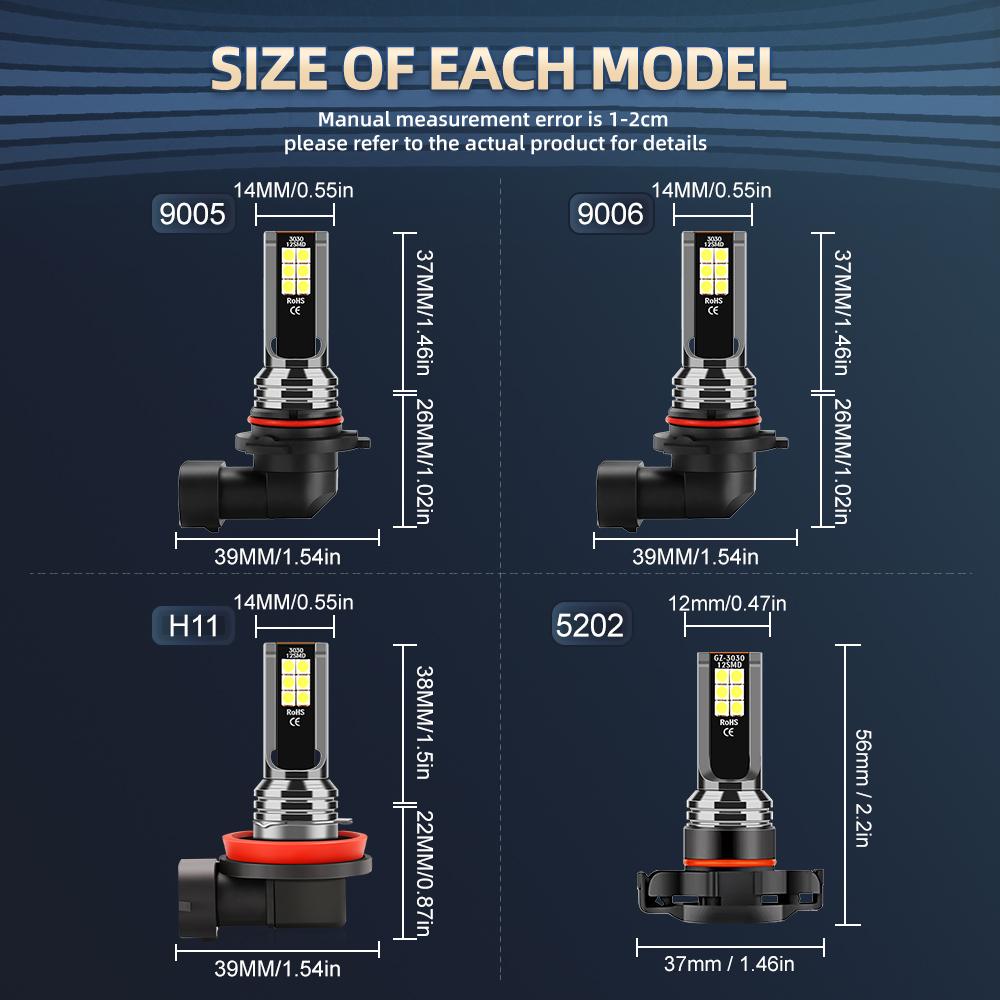 9005/HB3 9006/HB4 H11 5202 H8 H9 Led Headlight Fog Bulbs 28000LM 5000K 6000K White Light SMD Chips Fog Bulbs Pack of 2