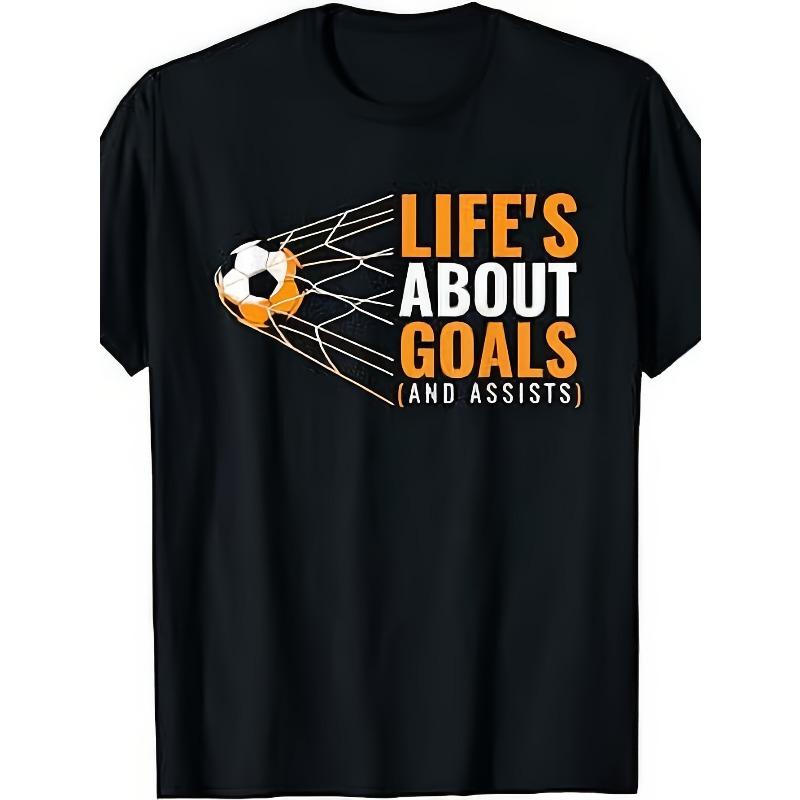 European sizes Men's Retro 'Life's About Goals' Soccer T-Shirt - Boys Style Short-Sleeve Jersey, Machine Washable Shirt for Training