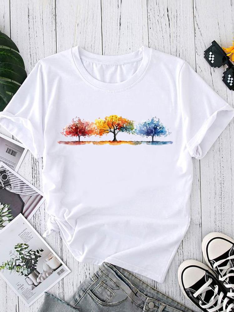 (Asian Size) sweet watercolor style Short Sleeve T shirt Printed T-shirts O-neck Casual Clothing Fashion Female Women's Top Graphic Tee