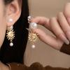 2026 Retro Round Sunflower Pearl Earrings Simple and Versatile Temperament Pearl Gold-plated Stud Earrings Women