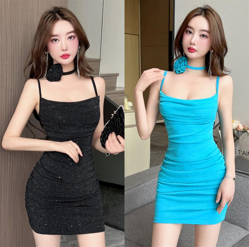 Fashion sexy Spice Girl hip skirt temperament pure desire mesh flower decorative design slim suspender dress