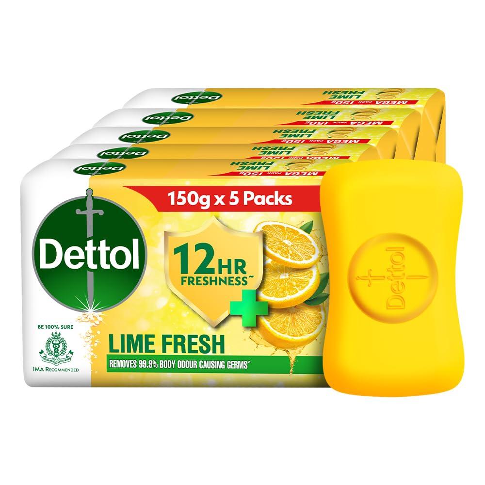 Dettol Lime Fresh (Lime Cool) Bathing Soap Bar with 12hr Freshness (750gm) |Long Lasting Freshness, 150gm Pack of 5