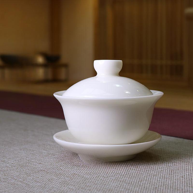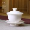 Goat Jade Porcelain Covered Bowl High-grade White Porcelain Handmade Sancai Bowl Tea Preparation Bowl Ivory Tea Set