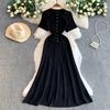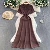 Această rochie lungă elegantă este perfectă pentru garderoba ta de primăvară și vară. Prezentând un frumos design floral francez și un guler rotund clasic, emană sofisticare și stil.. Rochia este cu nasturi pe o singură parte pentru un aspect atemporal și este confecționată din material poliester de înaltă calitate, asigurând confort și durabilitate.. Țesăturile tricotate folosite la construcția sa adaugă o notă de lux și textură, făcându-l o piesă distinctivă pentru orice ocazie.