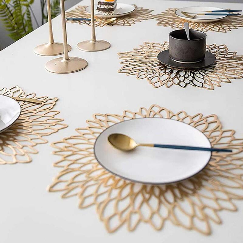 Modern Gold PVC Round Dahlia Placemat 37cm