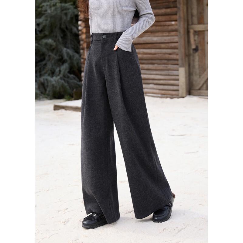 Women's High-Waist Wide-Leg Wool Blend Casual Pants